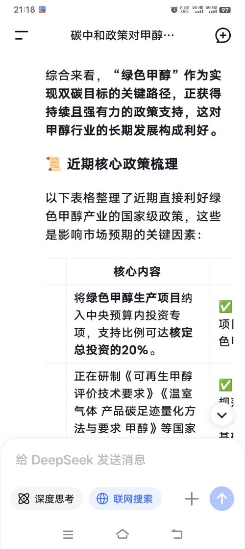 今天政策推出碳达峰碳中和全国现货甲醇应上调100元每吨