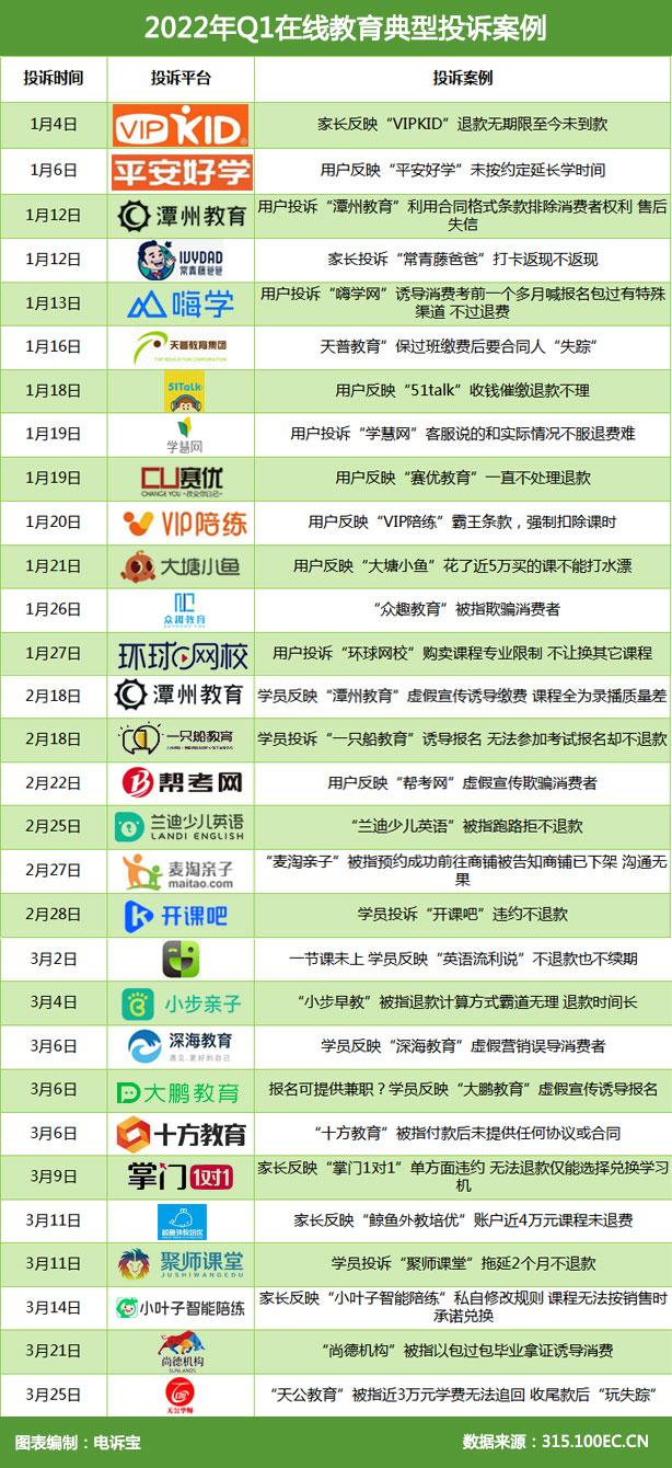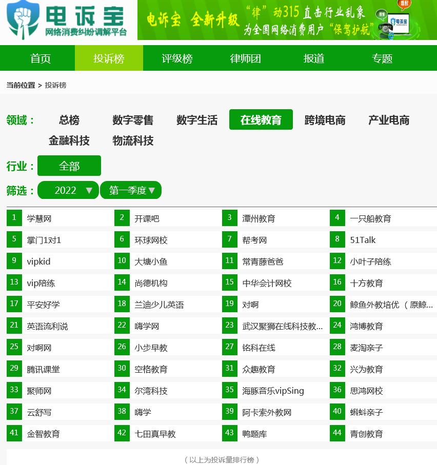 开课吧潭州教育英语流利说等入选Q1全国在线教育典型投诉案例