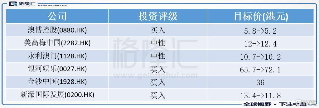 大行评级 | 高盛:调整澳门赌业股目标价 银娱取代金沙中国纳确信买入