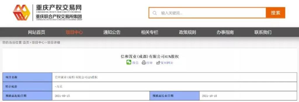 事关“御龙山”:成都信和置业41%股权拟公开转让!