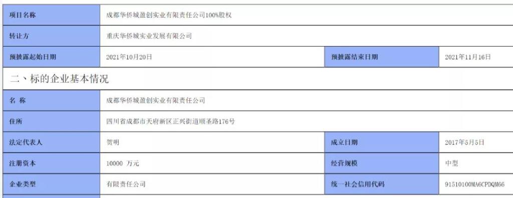据氢地产新媒体监控,2021年10月20日,一则最新的股权交易信息浮上水面——重庆产权交易网显示,“成都华侨城盈创实业有限责任公司(以下简称盈创实业)100%股权”项目开始预披露。据重庆产权交易网工商信息显示,盈创实业成立于2017年5月,注册资本1亿元。2021年9月30日财务数据显示,盈创实业资产总计约4.73亿元,负债总计约4.84亿元,所有者权益-1077.18万元。目前,盈创实业的挂牌底...