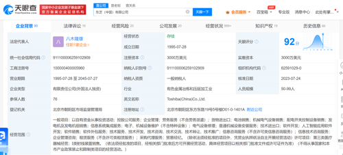 $东芝(ADR)(OTCBB|TOSYY)$据报道,日本东芝公司将于当地时间20日从东京证券交易所退市,结束自1949年以来74年的上市企业历史。天眼查显示,东芝(中国)有限公司成立于1995年7月,法定代表人为八木隆雄,注册资本3000万美元,经营范围含以自有资金从事投资活动、控股公司服务、人工智能应用软件开发、采购代理服务、贸易经纪等,由东芝公司全资持股。对外投资信息显示,该公司直接持股2...