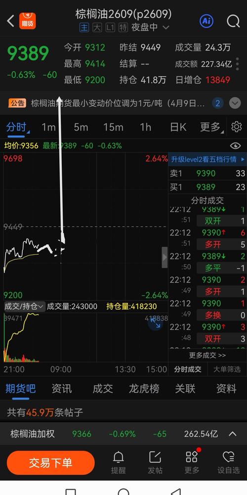 $棕榈油2609(DCE|p2609)$这个是多空都能赚就看你的胆子大不大手够不够快虽然下午没有做上空,晚上做那个多,而且我没平看后面原油回升星期一应该还能上涨