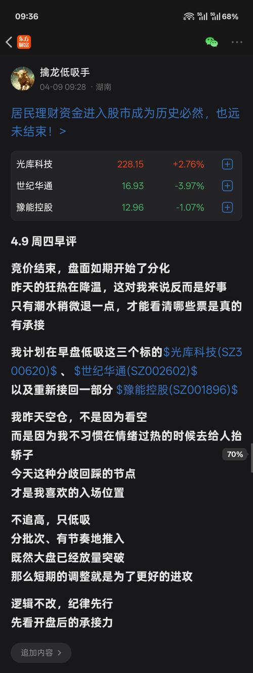 刚刚那条被限流了,重发一遍 早盘分歧,是低吸的良机 不追高,只在回踩时拿筹码 计划低吸$光库科技(SZ300620)$$世纪华通(SZ002602)$ 以及重新接回一部分$豫能控股(SZ001896)$ 逻辑很简单 昨天的狂热在降温,而我的买点就在这种降温里 分批推入,节奏优先 逻辑不改,纪律先行 先看承接