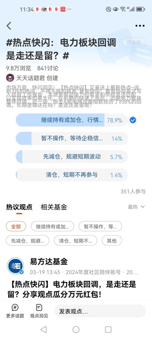 #热点快闪:电力板块回调是走还是留?#选择了“继续持有或加仓,行情尚未完结”。今年政府工作报告将“能源安全保障””绿色低碳转型”“新型能源体系建设”明确纳入2026年度重点任务,并通过量化目标和工程部署,构建起未来五年中国能源战略框架。此外,2026年两会政府工作报告中对“降碳目标”和“未来能源”的积极定调,也为风光电-绿氢-绿醇产业链的加速发展铺平道路。从能耗双控向碳排放双控的转变,提升绿电消纳...