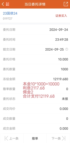 $23国债24(SH019727)$这个价买根本没钱赚,我前两天100.143买的,结果最后的价格是102.01,不知最后价格收了什么费用。如果到期后还收取其他费用,就会亏。