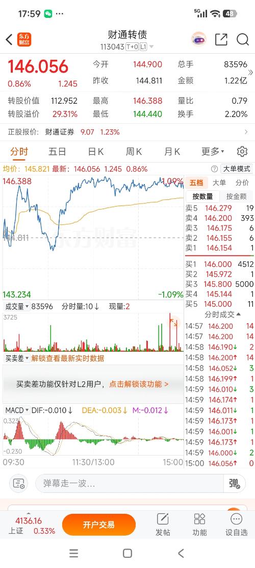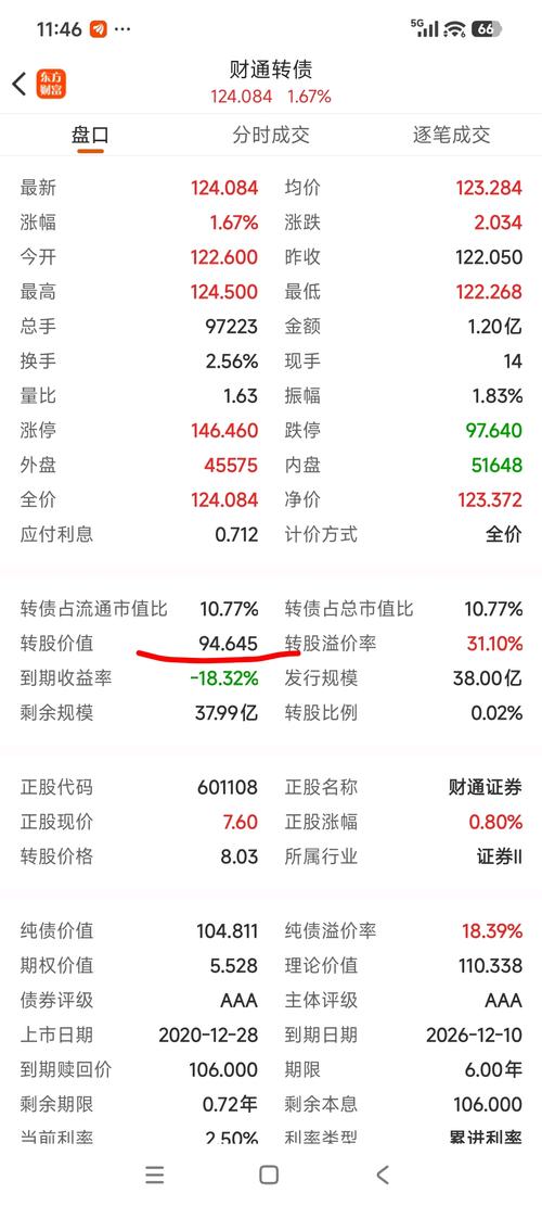 废柴财通证券转股价值94.65元!现价124.00元买入的大脑入水了!