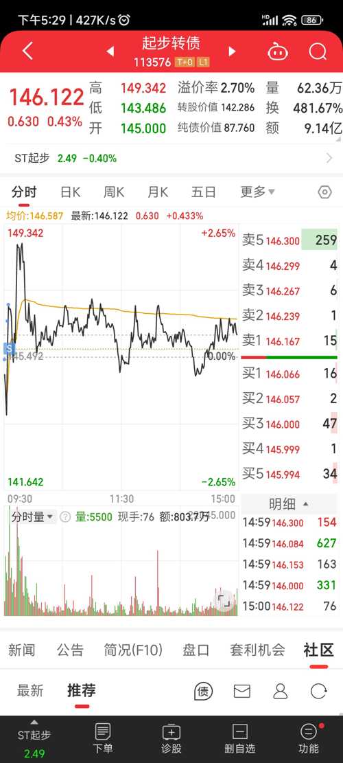 $起步转债(SH113576)$$ST起步(SH603557)$$*ST卓朗(SH600225)$ST起步、起步转债:今天正股低开反弹收涨1.5%,转债则从溢价跌到折价,让我想起ST花王和转债去年年底的走势!如果明天股票继续转强,转债又会涨到溢价,看好ST起步的股债联动行情!ST股的杂鱼债行情,持续性其实都不错,不至于3天就结束!*ST卓朗:明天复牌,复牌公告评论区有很多人看好,那么开...