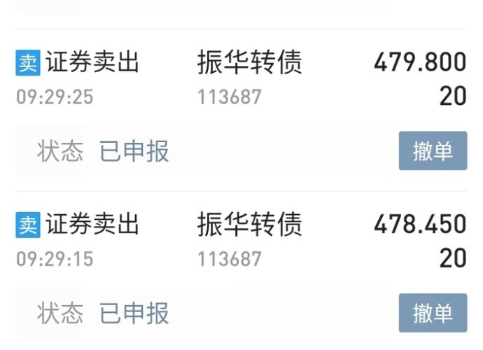 $振华转债(SH113687)$开盘476买的,挂478.45卖,最高479.25,但是没有成交!挂单有点晚了