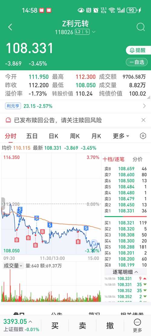$Z利元转(SH118026)$买了10手,最终亏1元,没有科创板权限。不然就尾盘买点转股