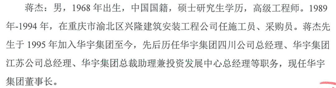 华宇集团在成立四十年以来,首次更换董事长。8月9日,华宇集团$19华宇01(SH155204)$发布信息显示,董事长、董事进行变更。华宇集团称因为实际经营情况和法人治理需要,任命蒋杰为董事长,张播为董事。蒋业华不再担任董事长和法定代表人。华宇集团公告还显示,蒋杰与蒋业华为亲属关系,截至信息披露之日,蒋杰未持有公司股份。在2023年3月,华宇集团才举行过四十周年的庆祝仪式,当时蒋业华还现场发言,为什...