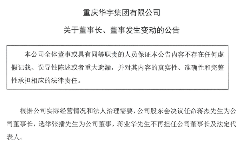 公告 155204:重庆华宇集团有限公司关于董事长、董事发生变动的公告