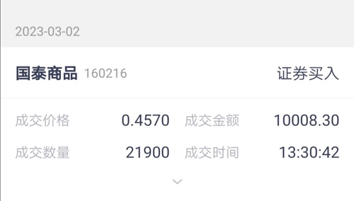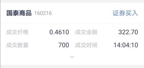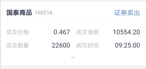 $国泰商品LOF(SZ160216)$今天把场内买的国泰商品,开盘价卖了,盈利223.2-手续费1.2=222,很吉利数字。
