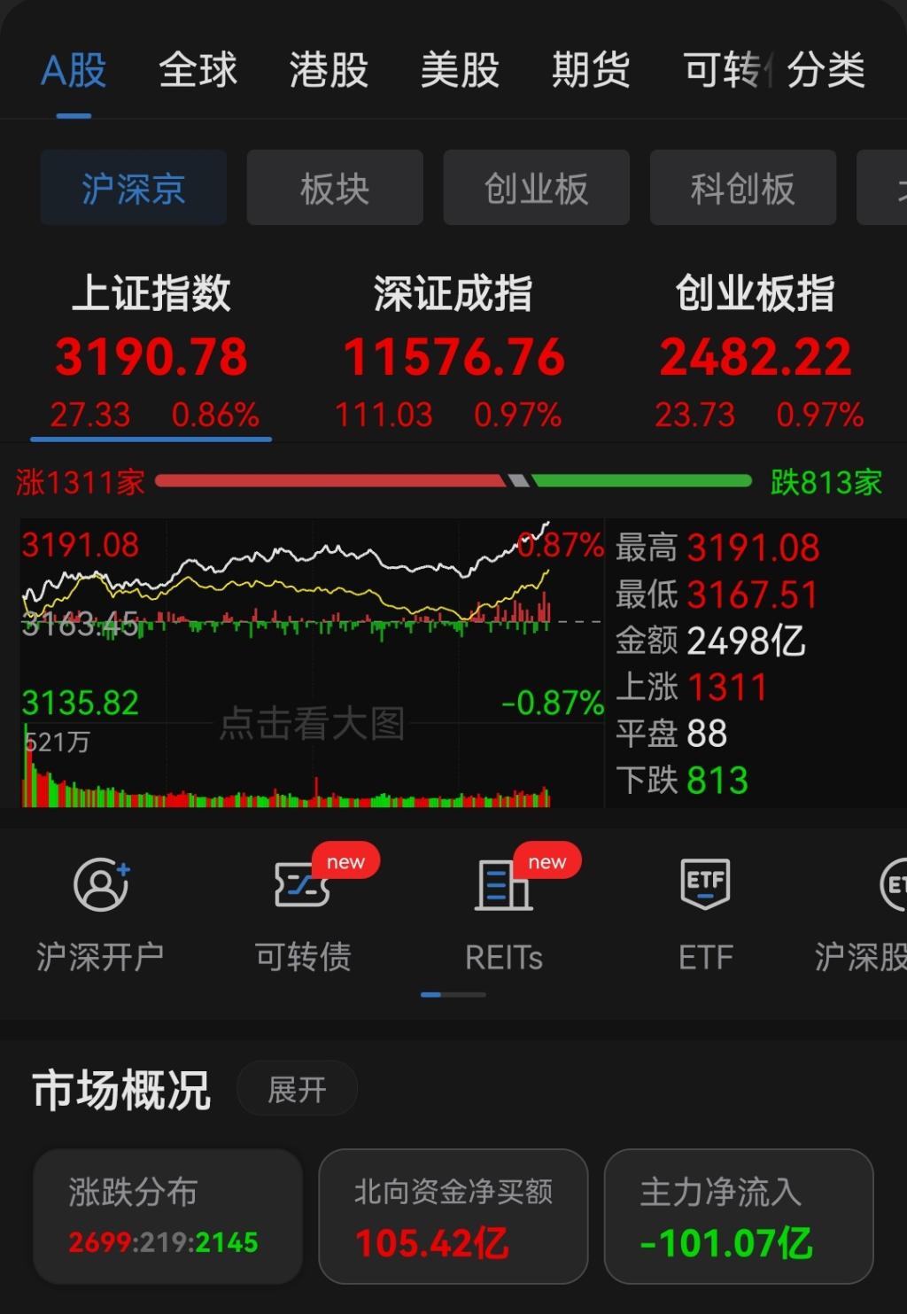 今日早盘白酒,生物制品,医疗服务表现强势带动盘面震荡上涨,宁德时代2022年业绩大幅增长带动锂电板块表现活跃。行情回顾:截止目前上证指数上涨0.86%报3190.22点,深圳成指上涨0.95%,创业板指上涨0.94%。涨幅靠前的板块有生物制品,保险,酿酒行业,医疗器械,医疗服务,装修建材,家电行业,多元金融等板块。跌幅靠前的板块有电源设备,光伏设备,风电设备,石油行业,互联网服务,光学光电子,汽...