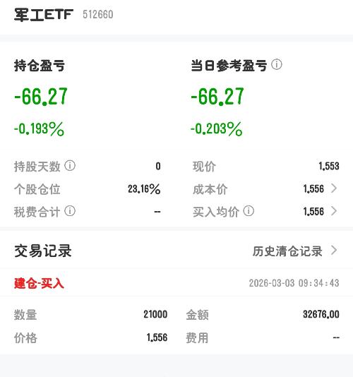 $军工基金LOF(SH501019)$3月2日收盘1.6251,3月3日上午10点指数跌4.4%,当前交易价格1.65左右,较昨日净值还有1.5%的溢价,折算净值每份溢价约0.1元。