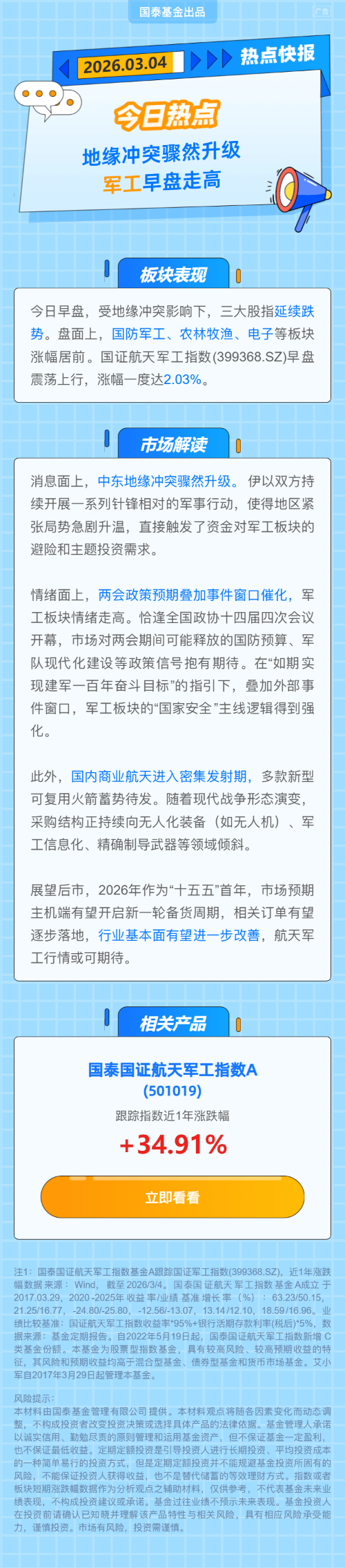 感兴趣的投资者小伙伴们可以下滑至长图底部,点击链接跳转哦~$国泰国证航天军工指数(LOF)A(OTCFUND|501019)$$国泰国证航天军工指数(LOF)C(OTCFUND|015599)$#伊朗关闭霍尔木兹海峡威胁石油安全##OpenAI联姻五角大楼AI军事化引争议##一马当先,投赢开年##下个风口赛道是谁?##下个风口赛道是谁?#
