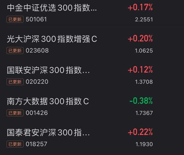 国泰基金这两天表现挺稳定,不光有大涨的,也有稳步爬升的,总体来说赚钱效应比前段时间强了。$中金中证优选300指数(LOF)C$上涨0.17%$光大保德信沪深300指数增强C$上涨0.2%$国泰君安沪深300指数增强发起A$上涨0.22%
