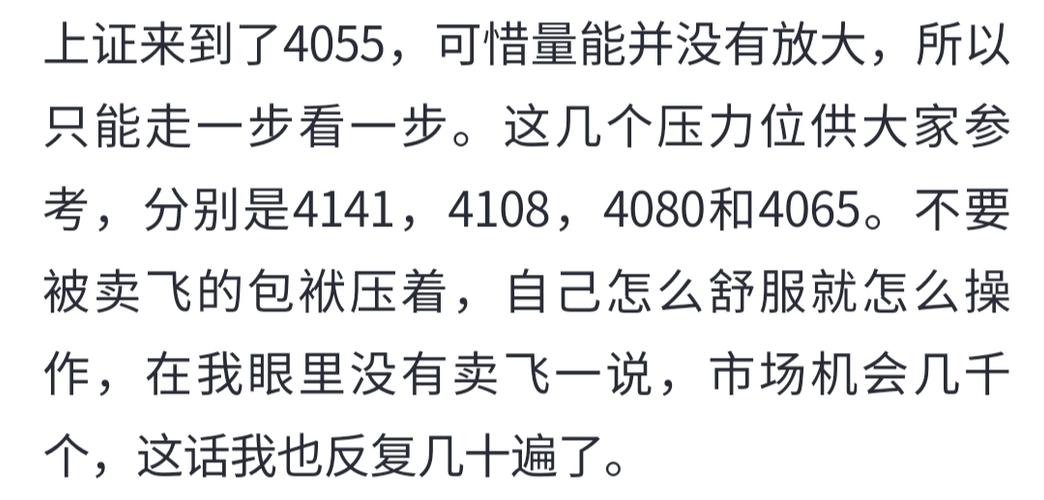 按照上周四给到大家的压力位,结合现在的上证日k,就剩下4141和4108了。考虑到消息面因素,再增加一个4096的压力位,同时也意味着市场将进入短期重压区。 其实今天复盘犹豫了很久,说真的,这样的走势涨了又好像没涨。从盘面的情况来说,大部分人依旧是赚了指数不赚钱,这就是最尴尬的地方,所以剩下的60点空间很有可能是分化加剧震荡向上的走势,我相信抱团会逐步瓦解,个股会出现补涨。 另外,主观上行情可能会...