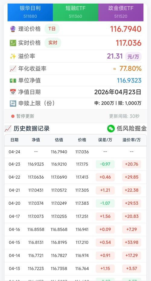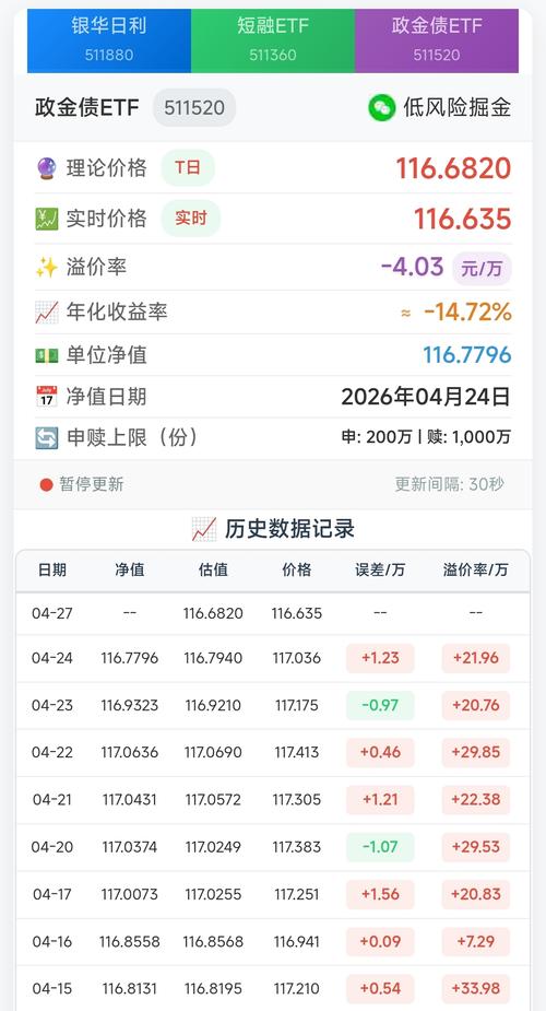 $政金债ETF富国(SH511520)$预估今日净值117.0572 昨日预估误差万1.07