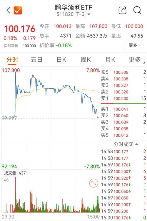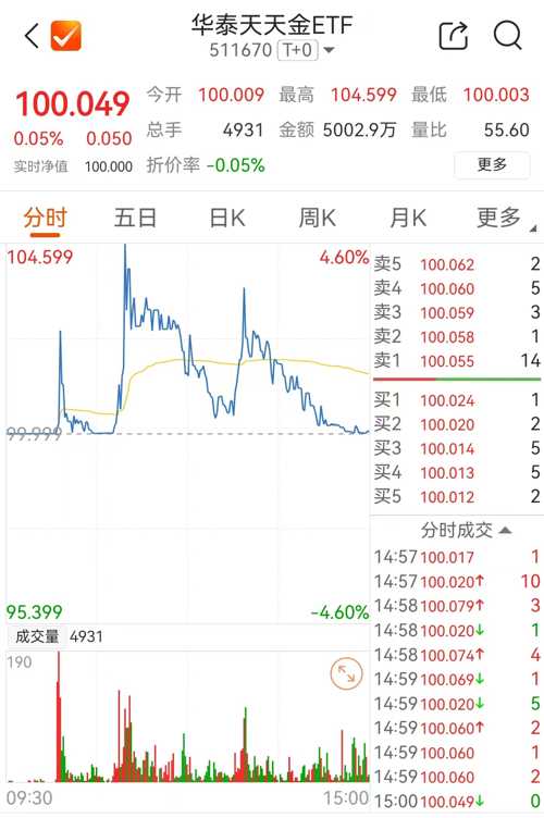 硬气了一个半月的A股,终于迎来一次像样的调整。不过在调整中,炒作之风又抬头。货币ETF又起飞A股行情不好,货币ETF又起飞:华泰天天金ETF(511670)最高冲到104.599元。鹏华添利ETF(511820)表现更猛,最高冲到107.8元!要知道这些货币ETF都是单位净值固定在100元的,就算今天有周末3天的利息,100.015元的价格也很合理了,何况货币ETF通常收益水平还达不到这么高。而只...