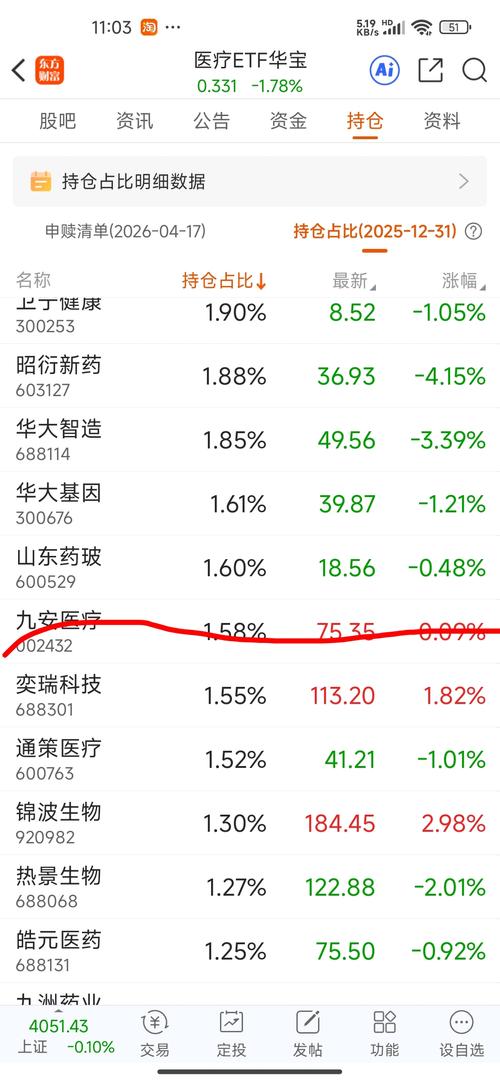 $医疗ETF华宝(SH512170)$ 九安持仓从年前1.58%到现在最高时候的5%+,股价由40到90+,一路接盘,以至于药明康德都在低位翻几倍上涨也没能把etf总的价格拉起来,这就是最大的问题 持仓股总是高位接盘,费用还高,没进来的最好别来