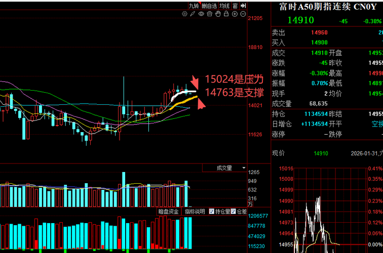 $上证指数(SH000001)$$创业板指(SZ399006)$$富时A50ETF嘉实(SH512550)$ 1.富时A50:2月份开盘时,月MA5=15024点(压力),月MA10=14763(支撑)所以2月份富时A50大概率大多数时间都将在14763-15024之间波动,往上突会回来,往下打会上去,说明超级大盘股的行情还没有来,不会大涨也不会大跌。 2.上证指数:2月份开盘时,月MA5=400...