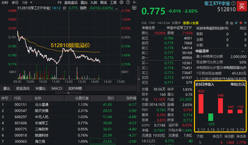 军工阶段寻底,资金加速吸筹!军工ETF(512810)下探2%频现溢价!