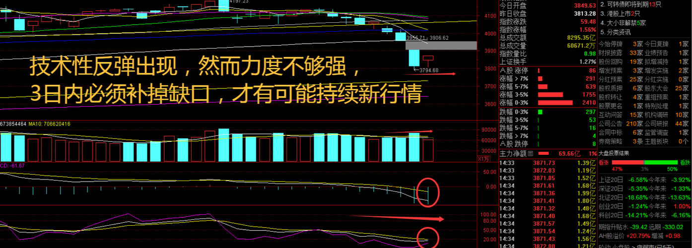 【盘面分析】 全球金融市场受到地缘政治的影响,出现了长达1个多月的行情,牛哥之前一直提到的“最怕A股补跌”,也在近期应验,这也说明:“技术走势上,该来的还是会来,只是早晚而已!”A股的连续下跌杀伤力极大,三大指数出现了破位走势,即使外盘大涨后亚太地区集体高开,仍然没有改变低走的态势,这也与不确定性增大后的恐慌情绪有关。A股市场并没有出现连续2个交易日大跌后的大阳线,主力资金出现了护盘手法,但是看到...