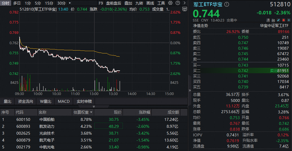 阶段新低!军工ETF(512810)失守半年线!权重股中国船舶、光启技术重挫逾4%!