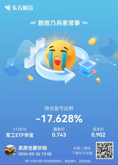 $光启技术(SZ002625)$ 3月26日午后,A股突发跳水,沪指跌逾1%。市场情绪扰动,科技成长显著受挫,军工板块快速走低,军工核心资产——军工ETF华宝(512810)跌逾2%再失5日均线。 军工ETF华宝(512810)80只成份股仅中国长城一股飘红,权重股中国船舶、光启技术跌逾3%,航发动力、中国卫星、中航沈飞跌逾2%,纳睿雷达、内蒙一机挫逾5%。 消息面,中东局势仍动荡。据报道,白宫坚...