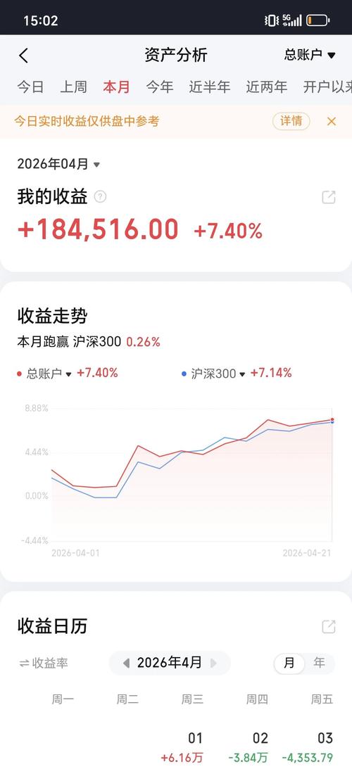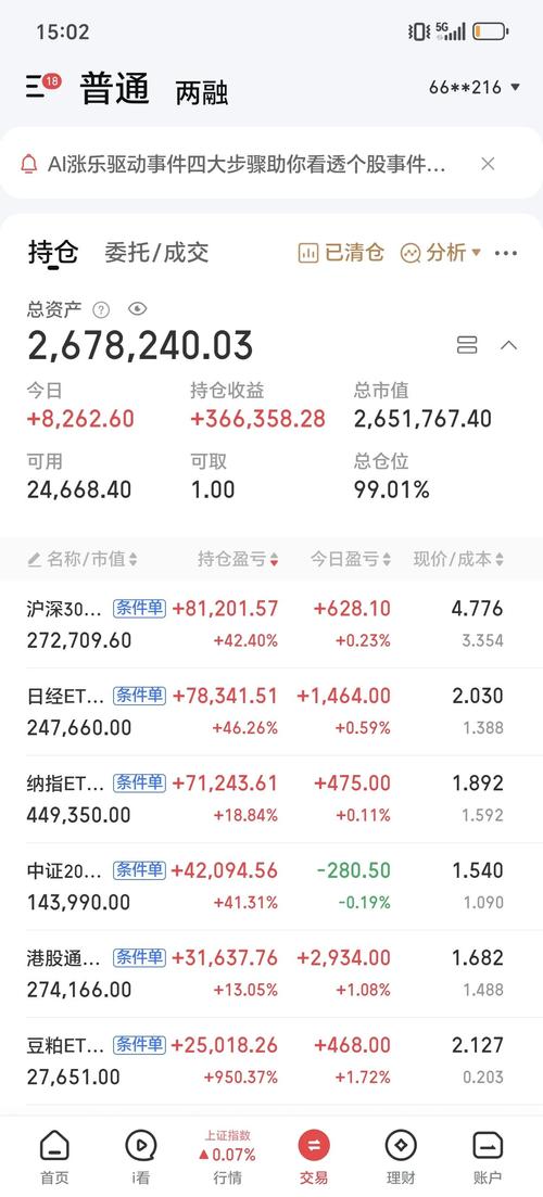 周末做个账户小结 顺便盘点一下目前的市场情况 一,目前账户收益 本周五个交易日 收益:红3天,绿2天 本周收益:2.31%,5.9万 本月收益:6.76%,16.6万, 本年收益:3.6%,9.1万 二,目前各标的仓位和收益情况 仓位前三名:恒科,纳指,红利低波 仓位后三名:豆粕,黄金,中证2000 今年的目标是市值300w, 目前市值260万,还差40万 今年的这个黄金坑 给加仓和网格买入提供了...