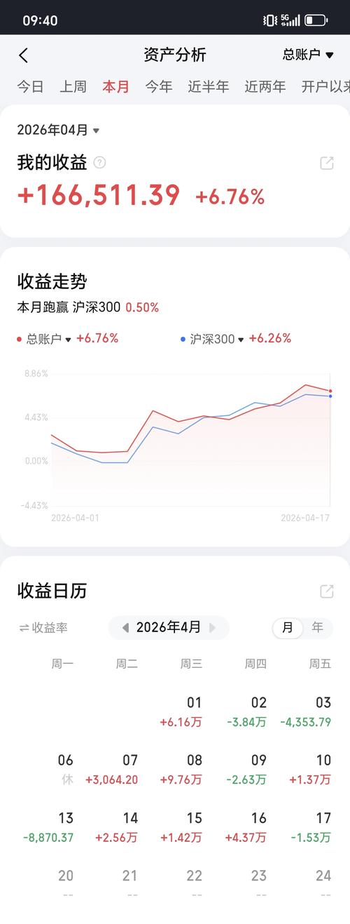 周末做个账户小结 顺便盘点一下目前的市场情况 一,目前账户收益 本周五个交易日 收益:红3天,绿2天 本周收益:2.31%,5.9万 本月收益:6.76%,16.6万, 本年收益:3.6%,9.1万 二,目前各标的仓位和收益情况 仓位前三名:恒科,纳指,红利低波 仓位后三名:豆粕,黄金,中证2000 今年的目标是市值300w, 目前市值260万,还差40万 今年的这个黄金坑 给加仓和网格买入提供了...