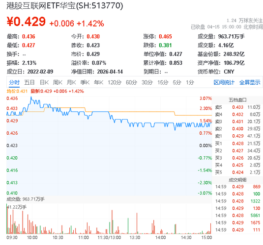 $港股互联网ETF华宝(SH513770)$几天了现在发现这里还买了十万份