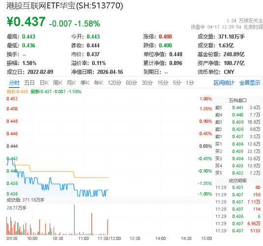 港股互联网ETF(513770)跌1.58%,狮腾控股领涨2.8%,规范化竞争增强发展韧性