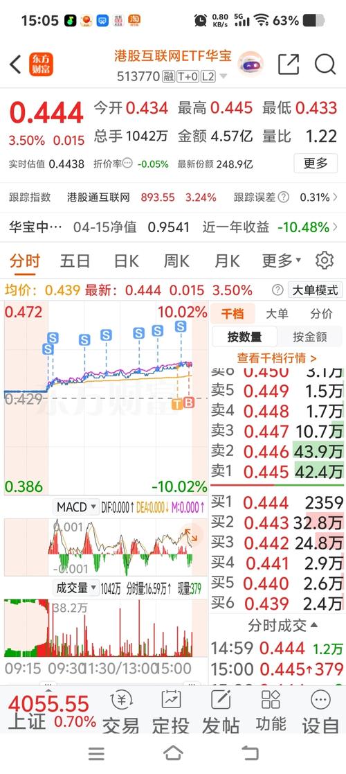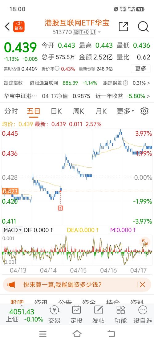 $港股互联网ETF华宝(SH513770)$ 0.445*0.970=0.432 0.445*0.960=0.427 0.445*0.950=0.423 0.445*0.940=0.418 0.445*0.930=0.414 0.445*0.920=0.409 0.445*0.910=0.405 0.445*0.900=0.400 0.430——0.425——0.420 0.418——0.415—...