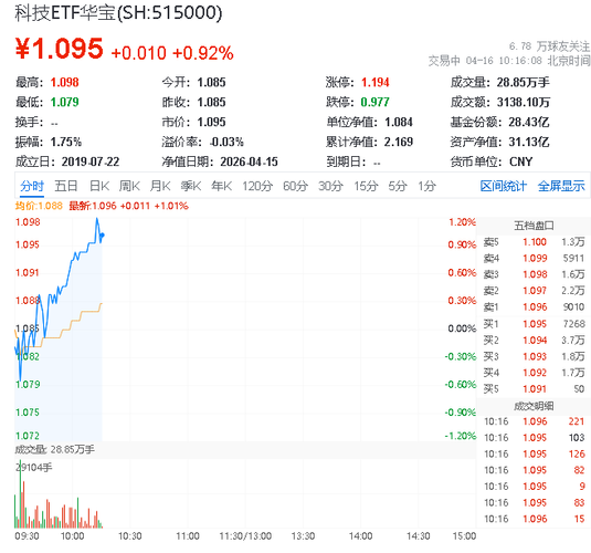 科技龙头大爆发!华宝基金科技ETF(515000)涨1.47%冲击历史高点,新易盛领涨7.48%!AI算力量价齐升
