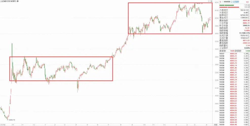 最近这波反弹,使得上证指数重回3800~4200的震荡区间内,从去年8月底算起,这个震荡区间已经持续8个月了。 目前还没有证据能表明本轮牛市已结束,但是要开启一轮新的上涨行情,重新点燃市场做多情绪,最起码得先向上突破这个区间才行,就像去年7月突破3500点那样。 假如哪天上证指数顺利突破4200,就是一个明确入场信号,在技术分析里,这属于顺势突破形态。 所谓顺势突破,就是当指数处于中长期趋势向上,...