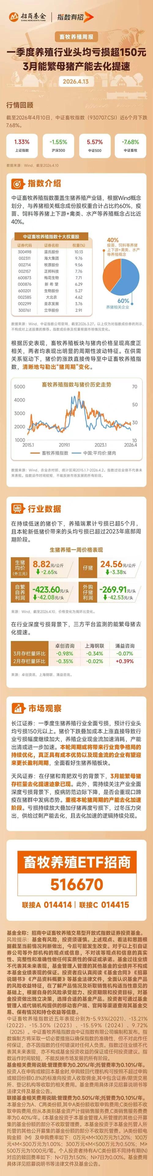 $畜牧养殖ETF招商(SH516670)$从过年到现在、这ETF一直在涨!、