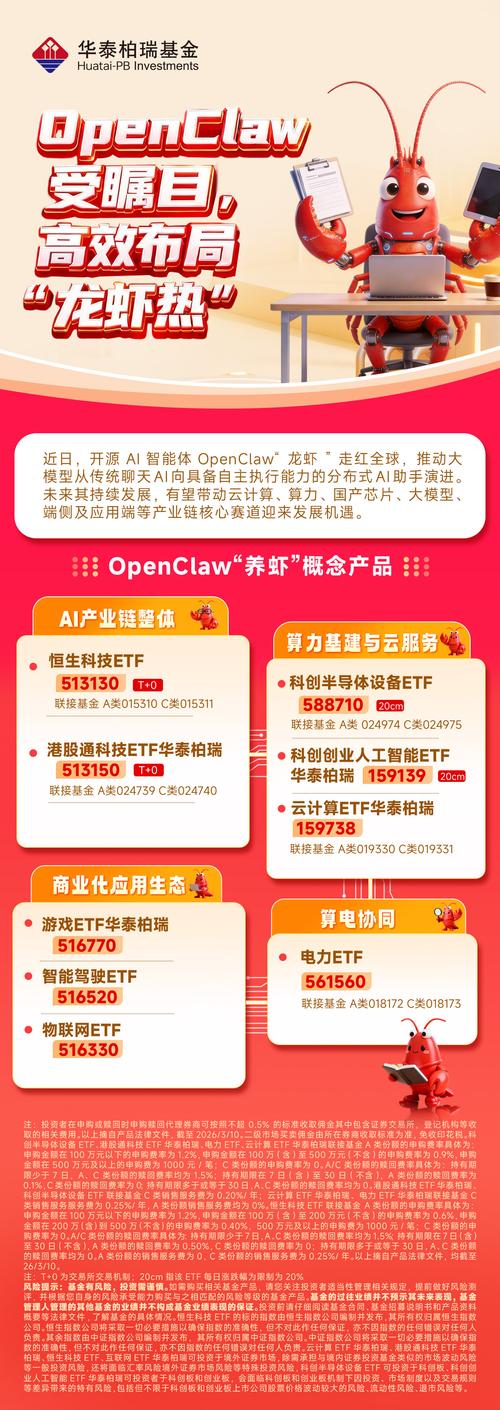 $恒生科技ETF(SH513130)$ $游戏ETF华泰柏瑞(SH516770)$ $电力ETF(SH561560)$ #AI“养龙虾”太火!核心受益股有哪些?#