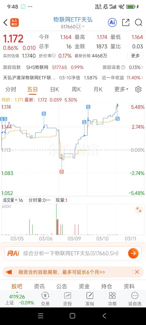 $物联网ETF沪港深(SH517660)$什么情况怎么突然负4个多点直接拉到正5个多点