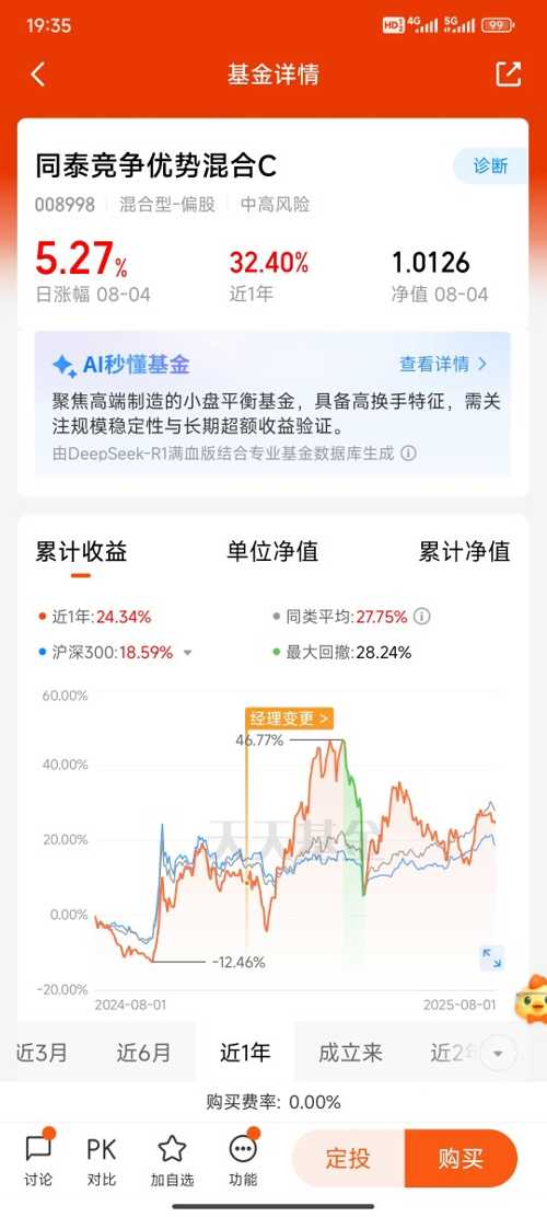 嘿!全球首届人形机器人运动会要来了,相关产业超热闹。运动控制产品技术壁垒高,发展空间大。同泰竞争优势今日强势上涨5.27%,作为弹性强的人形机器人主题基金,小而美又灵活。咱投资者可不能光看着,抓住机会投资它,说不定收获满满呢!$同泰竞争优势混合C$