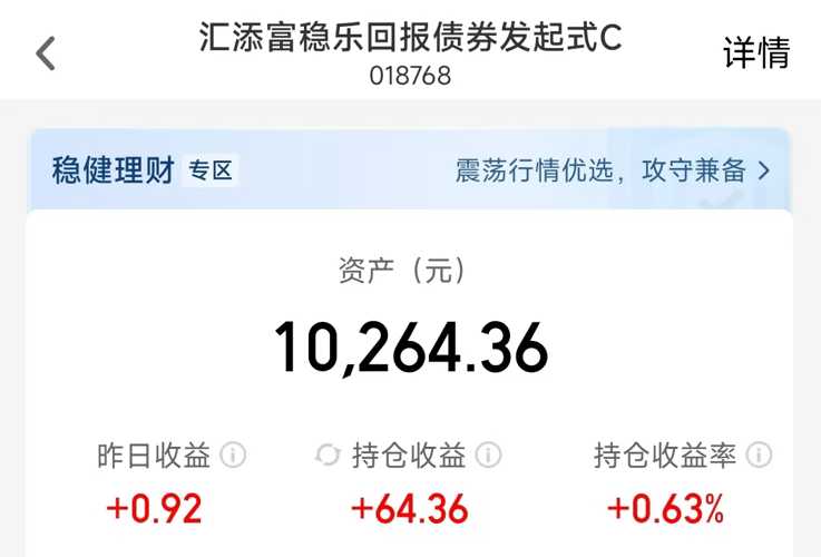 A股牛不牛我不知道,但我肯定要均衡配置的,看今天的行情是要回调的节奏,先减仓机器人、CPO、数字经济等,加点稳健债基和固收+,现在趋势向好,我底仓会更偏爱稳中有进的固收+。$汇添富稳乐回报债券发起式C(OTCFUND|018768)$是中波固收+,回撤小收益高,债基打底确保稳健,A股红利+港股成长做增厚收益,稳中有进,接下来板块轮动加快,在市场缺乏明确主线的情况下,汇添富稳乐债券C这样的配置优势很...