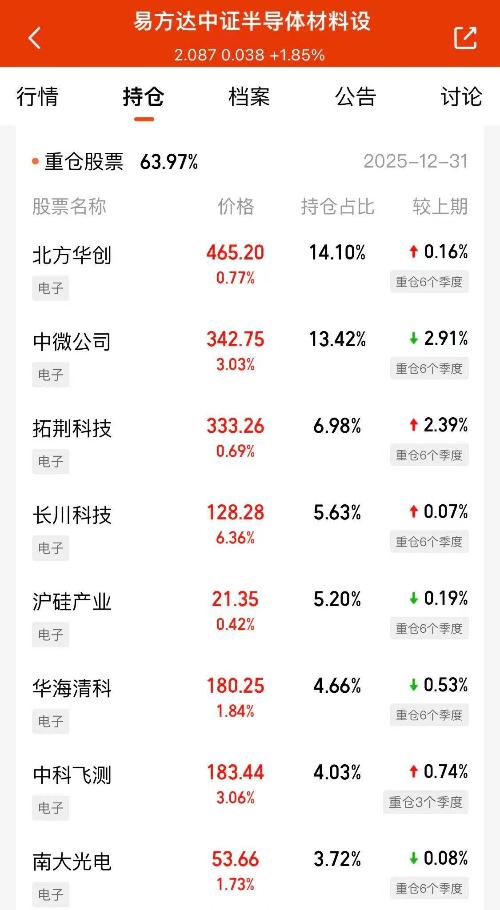 今天寒武纪大跌十几个点,半导体芯片指数跟着承压,而半导体设备板块逆势上涨,指数成份里没寒武纪,权重股全线飘红,资金切换的意图特别明显,易方达半导体设备C,当下位置正合适,继续布局准吃香。 $易方达半导体设备ETF联接C$