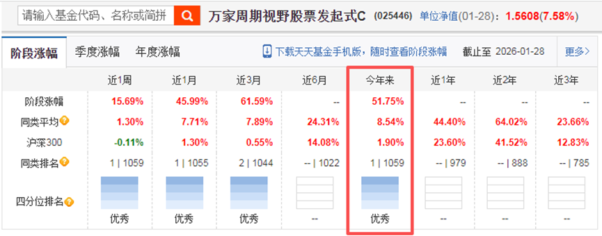 2026年收益率排名第一——这只基金强到没有朋友