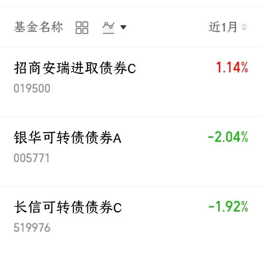 二月份行情震荡,不是很稳,不过有些可转债以前提前进行防御了,所以收益还是很不错的。比如$招商安瑞进取债券C(OTCFUND|019500)$,近一月涨幅就有1.14%$银华可转债债券A(OTCFUND|005771)$近一月回调2.04%$长信可转债债券C(OTCFUND|519976)$近一月回调1.92%#3月基金投资策略##我的养基小心机##稀土小金属走强战略资源价值重估持续#
