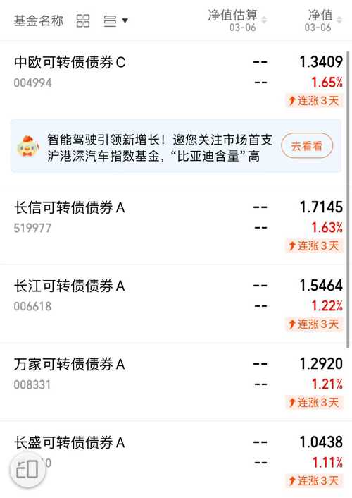 经历了小起伏之后,希望债市接下来好好表现,看看我最近的收入,$长盛可转债债券A$收了111个蛋,$长信可转债债券A$收了163个蛋,$中欧可转债债券C$(004994)收了165个蛋,中欧可转债在这几只基中呈现领涨状态,每次业绩都是冲在最前面,历史各阶段收益也都很高,拿着体验感确实拉满了#人形机器人万亿赛道启动!#