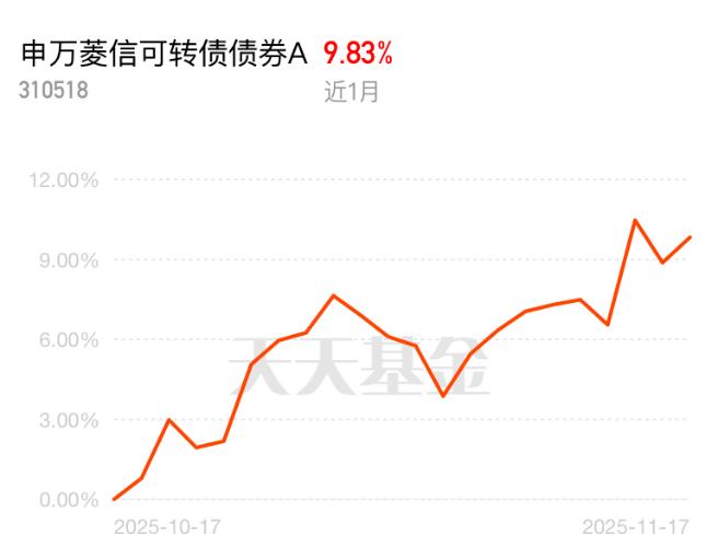 想在近期理财市场赚点收益,选对产品太重要了。申万菱信可转债债券A值得拥有,近1周2.36%、近1个月9.83%,短期同类第一,权益配置都是热点,涨势喜人。
