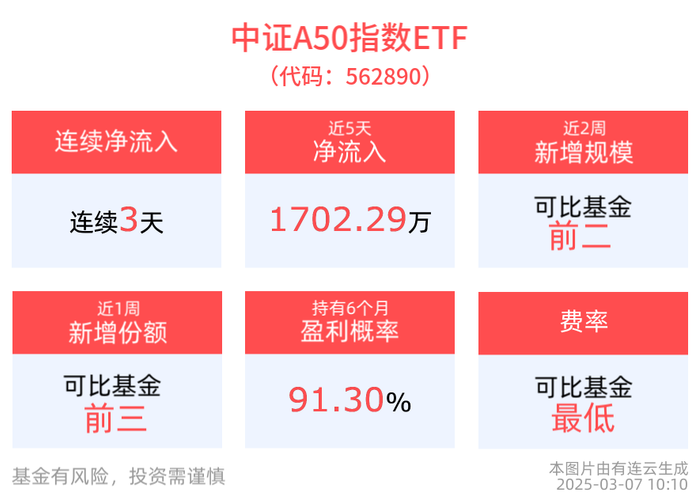 政策优化+科技突围合力推动经济企稳回升,中证A50指数ETF(562890)连续3天净流入