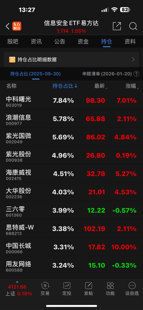 $信息安全ETF易方达(SH562920)$这持仓涨那么⋯⋯这咋那么弱