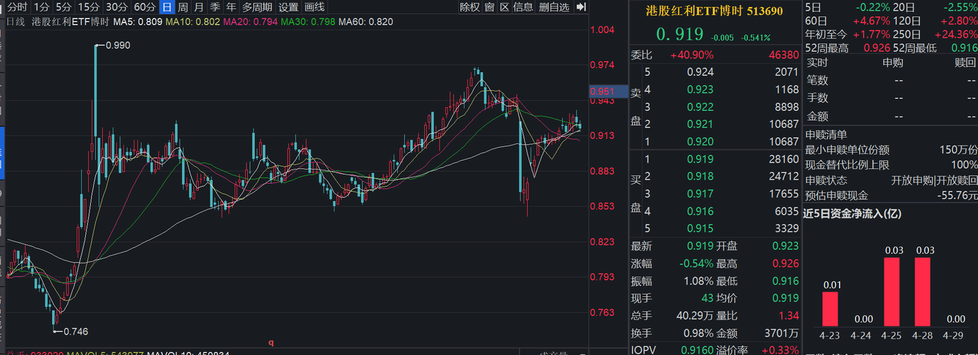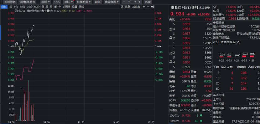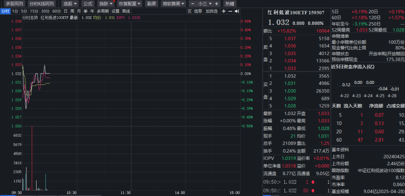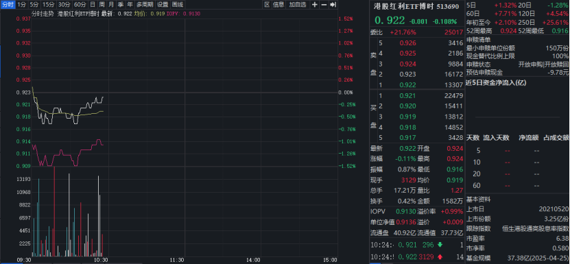 最近几天关于会议没有太多的增量信号,力度定调明显不及预期。综合各方面信号,关税缓和可能性较大,所以现阶段国内刺激政策仍保持定力,房地产政策也是托而不举,近两天大盘震荡属于正常现象。 今天早盘$港股红利ETF博时(SH513690)$微涨0.54%,近18个交易日累计吸金超1100万元,规模已增至37.76亿元,份额创近1年新高。 数据来源:iFinD,截至:20250429 $红利低波100ETF...